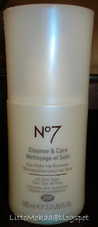I finished a few bottles before this one, but I thought it might be fun to include in my monthly finished products XD I love this lens care solution because it's different from the other one! You don't need to rub your lens & rinse it & rub it again. It comes with a special lens case and what you do is pop your lens off your eyes, put it in the case and pour some solution in the container. You put your case in the little container and voila. See the magic! There a special metal at the end of the case and when it comes in contact with the solution (some type of peroxyde) it forms some tiny bubbles that will rub on your lenses to clean them. However, since it's peroxyde, you have to wait at least 6 hours before putting your lenses back because the peroxyde turns into a saline solution, or else your eyes will freaking burn.Boots no.7 Cleanse & Clear Eye-Makeup remover